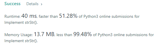 i번째부터 needle의 길이만큼 indexing한 이후에 needle의 값과 비교했다.