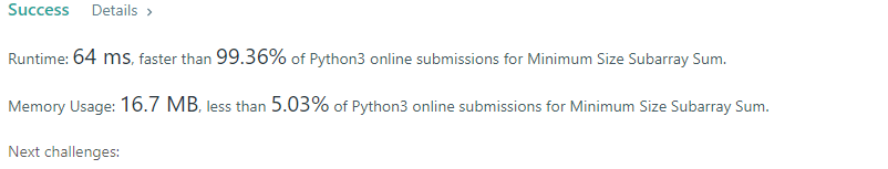 [Python] #209. Minimum Size Subarray Sum(Medium) 본문