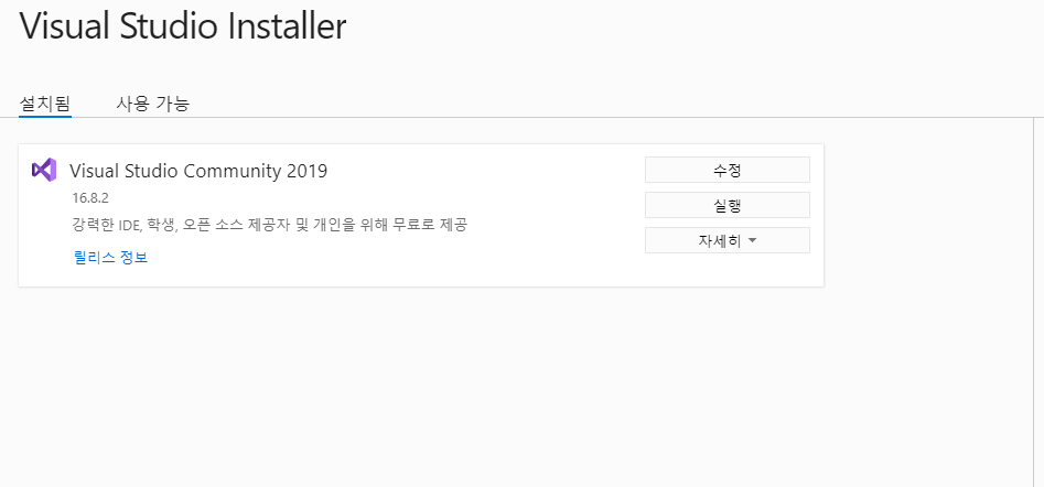 [IDE 설치] Visual Studio 2019 community 설치하기 본문